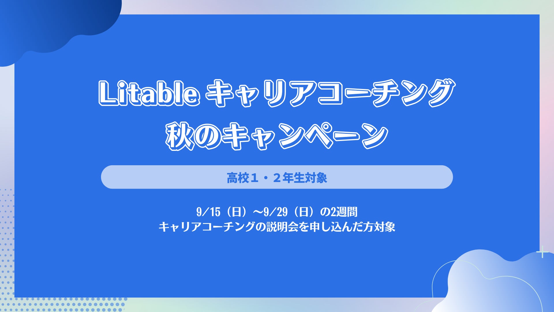 冬に向けて進路を考える機会も増える時期であるため、一定の期間の申し込みでキャリアコーチング1万円割引いたします。