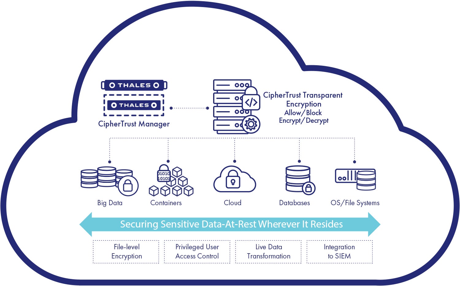 CipherTrustの透過的暗号化ソリューションは、データの保存場所を問わずデータ保護を実現し、組織がコンプライアンス要件を満たすことを支援します。