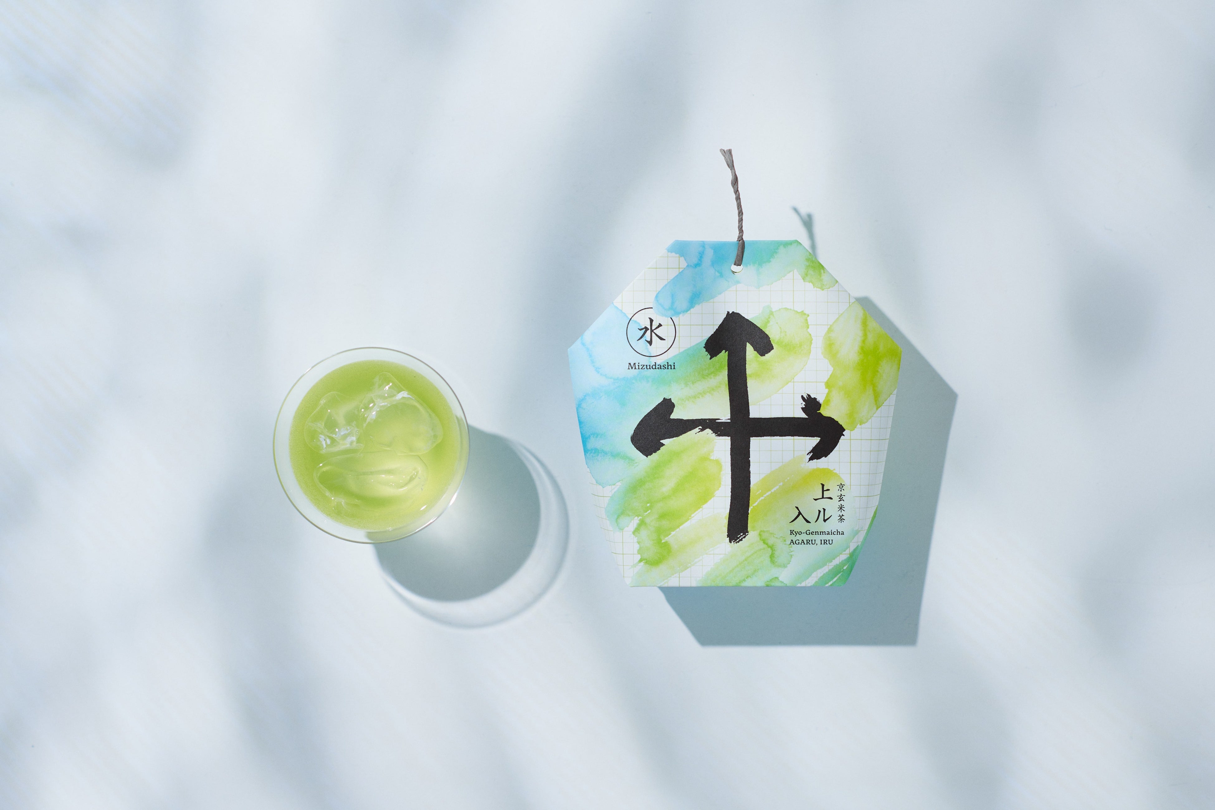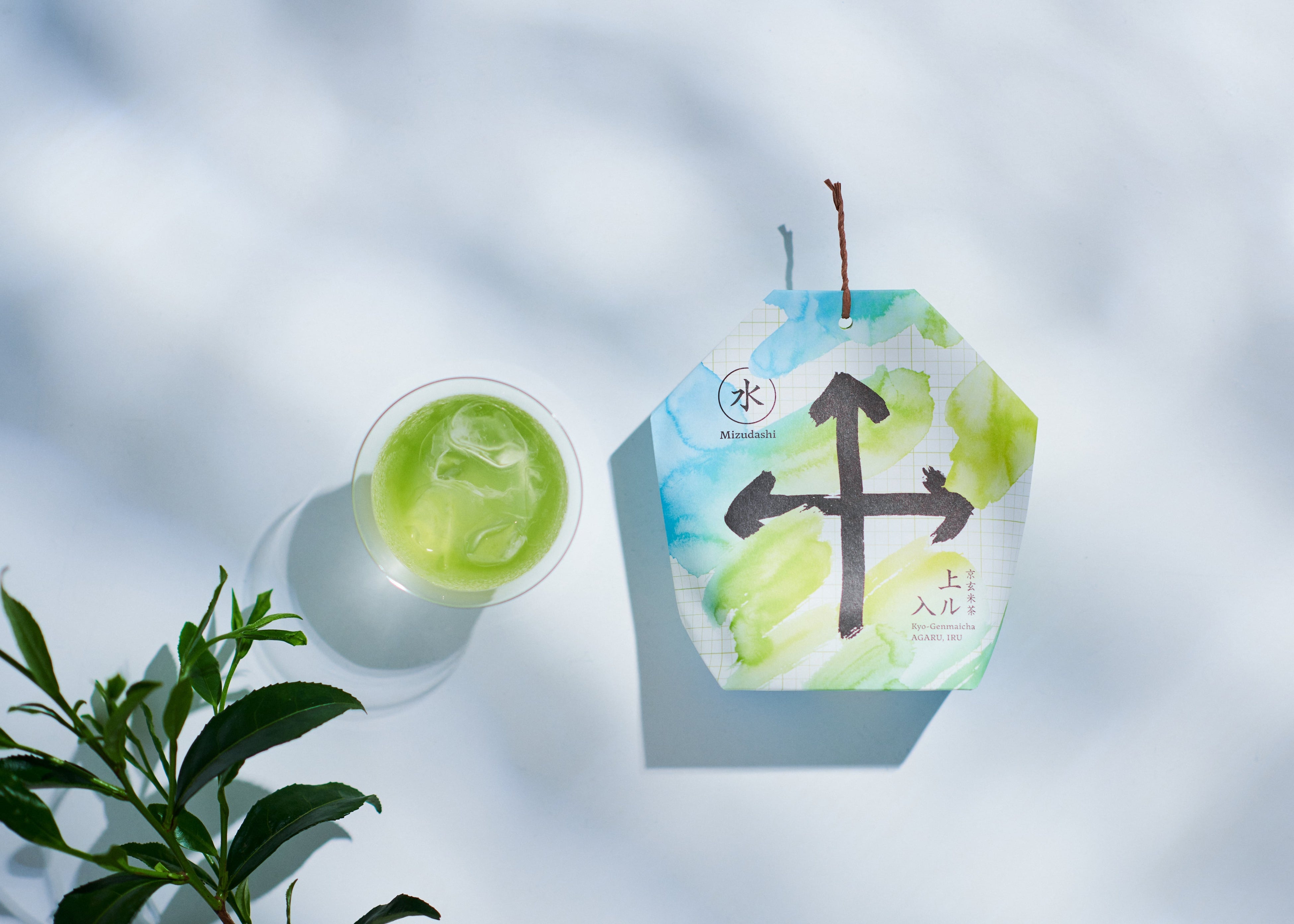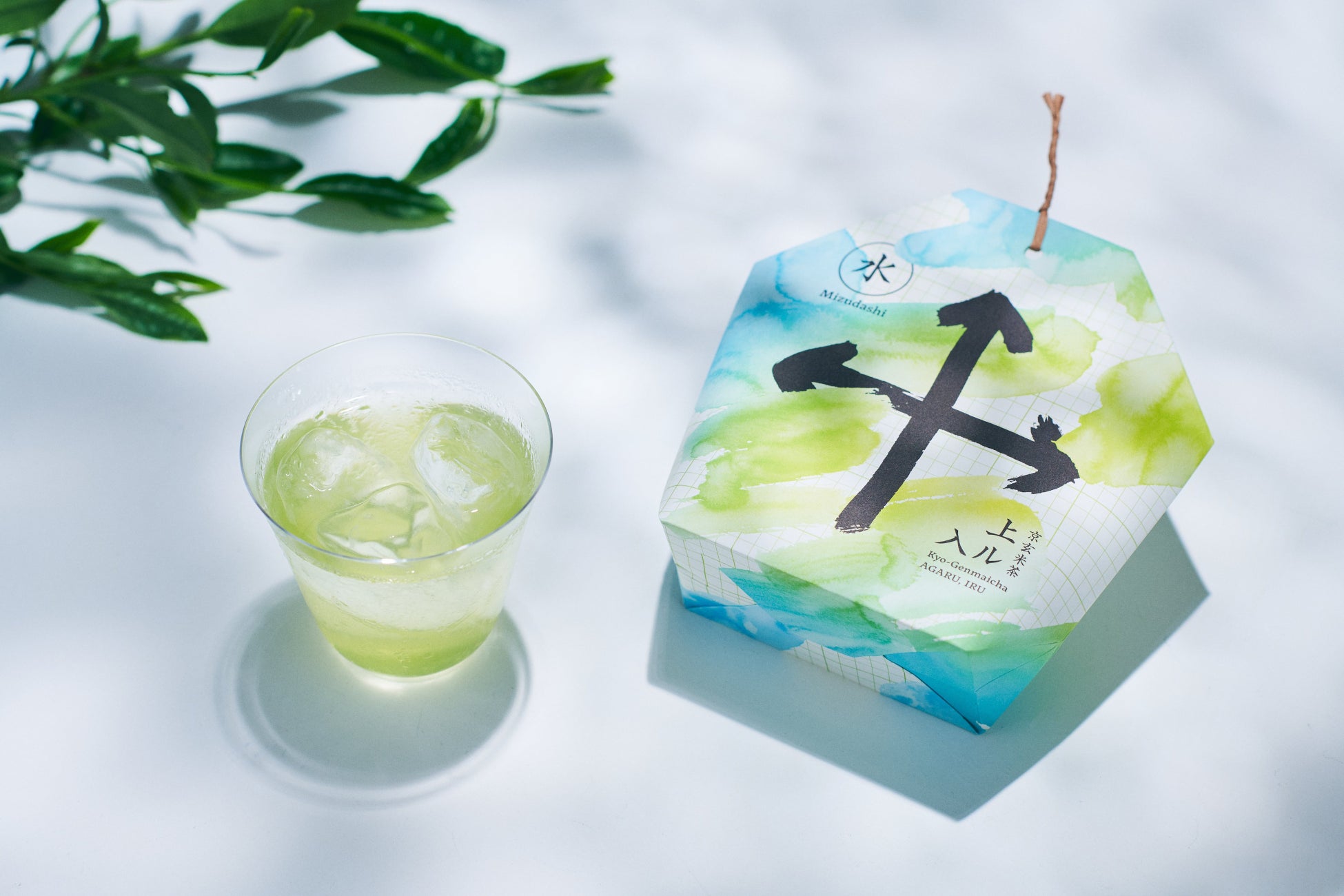 深蒸し茶とは、緑茶の製造工程のひとつである「蒸し」の時間を通常より長くとったお茶のこと。しっかりと蒸されることで茶葉が細かくなり、表面積が広がって抽出性があがるので、水で出しても旨みが濃厚に溶け出します。そこに石臼挽き宇治抹茶をブレンドすることで、見た目で涼を誘う鮮やかなグリーンを実現。京都の老舗米菓舗「鳴海屋」特製の「備長炭炭火炒り餅」のやさしい香ばしさはそのままに、夏限定の味わいが完成しました。キリっと冷えた水出し茶は、気温がアガルほどおいしくて、いっそう気分がアガル! 夏こそ飲みたい玄米茶です。