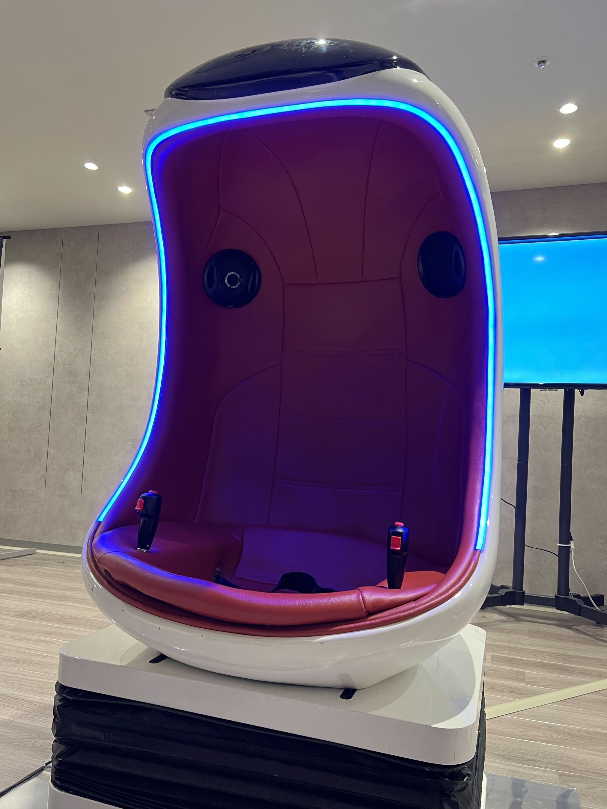 丁度1名が座れる大きさの筐体(前後左右上下に動く)と、VRゴーグルを活用して、VRコンテンツ(ジェットコースターなど複数コンテンツ)を楽しんでもらう体験型のイベントになります。
