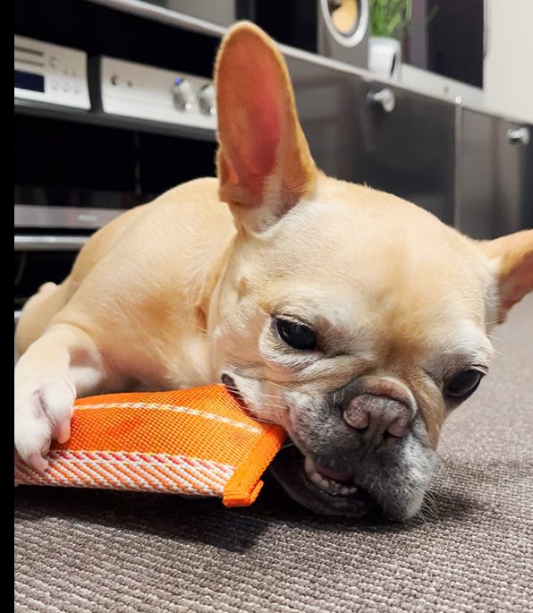 とにかく噛む力が強くて、丈夫だと言われているおもちゃもすぐに壊してしまうピノコ。噛むたびにパキパキ、ギュッギュと音がするのも楽しそうで夢中で遊んでいました♪ 30分ノンストップで与えてみましたが、縫製もしっかりしていて安心。どの色が届いてもかわいいので、楽しみにしていてくださいね!
