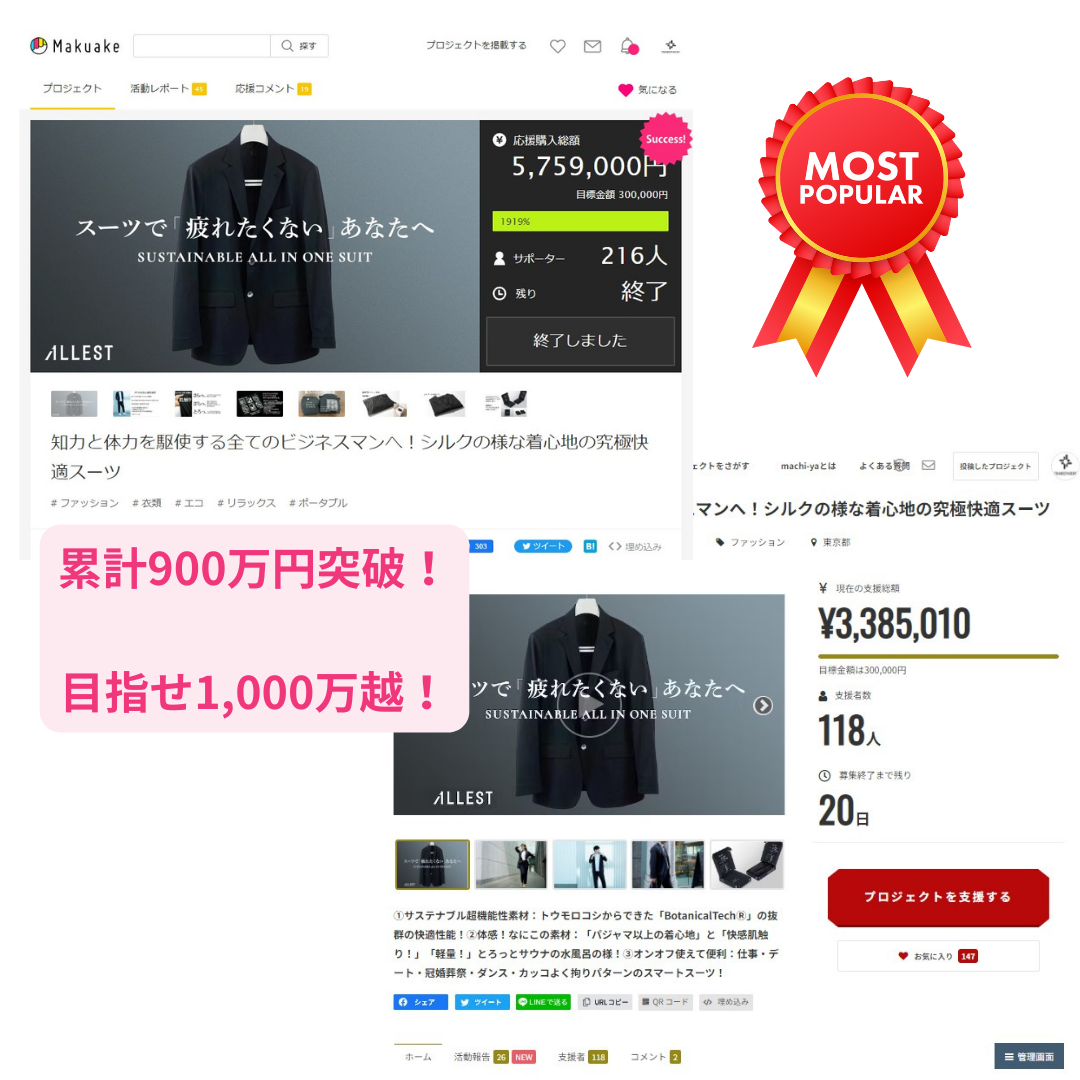 サステナブルオールインワンスーツ「ALLEST」が初Makuakeローンチに続きmachi-ya挑戦中!