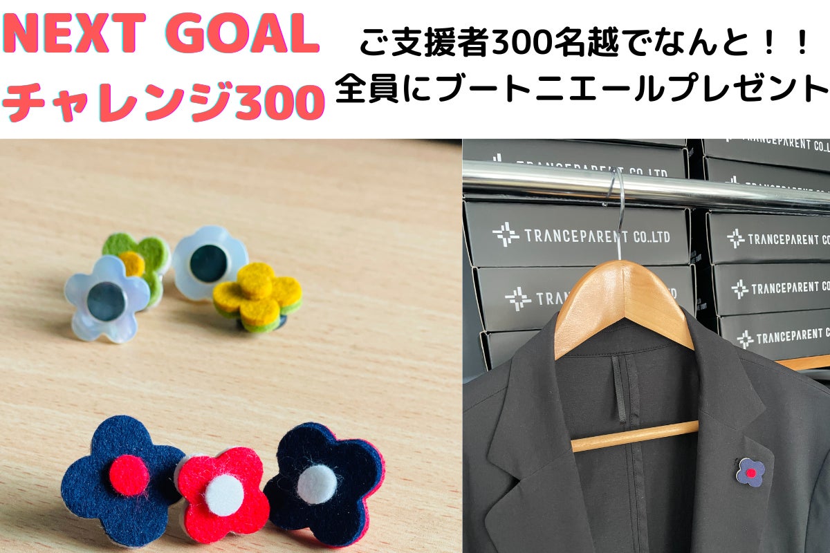 チャレンジ300では支援者が300名を突破したら、全員にジャケットの胸飾りである「ブートニエール」をプレゼントする企画もスタートした。