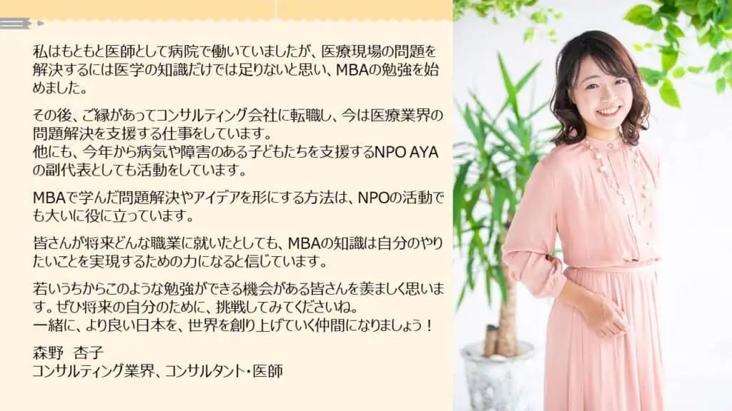 この講義では、中川先生がなぜ『13歳からのMBA』を書いたのかや、自身の経験や知識を通じて、参加者の皆さんに貴重なインサイトとアドバイスを直接伝えます。