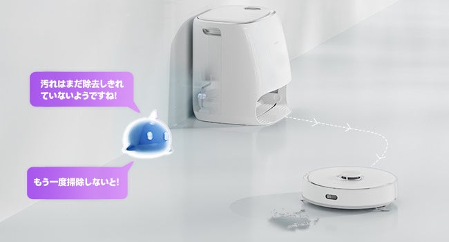 Narwal Freoは特許取得済みの汚れ検知機能を備えており、清掃中に汚れが激しい箇所を発見すると、自動で2度拭きを行います。これにより、短時間でかつしっかりと床をきれいに保つことができます。「自ら考え行動する」最先端のロボット掃除機です。