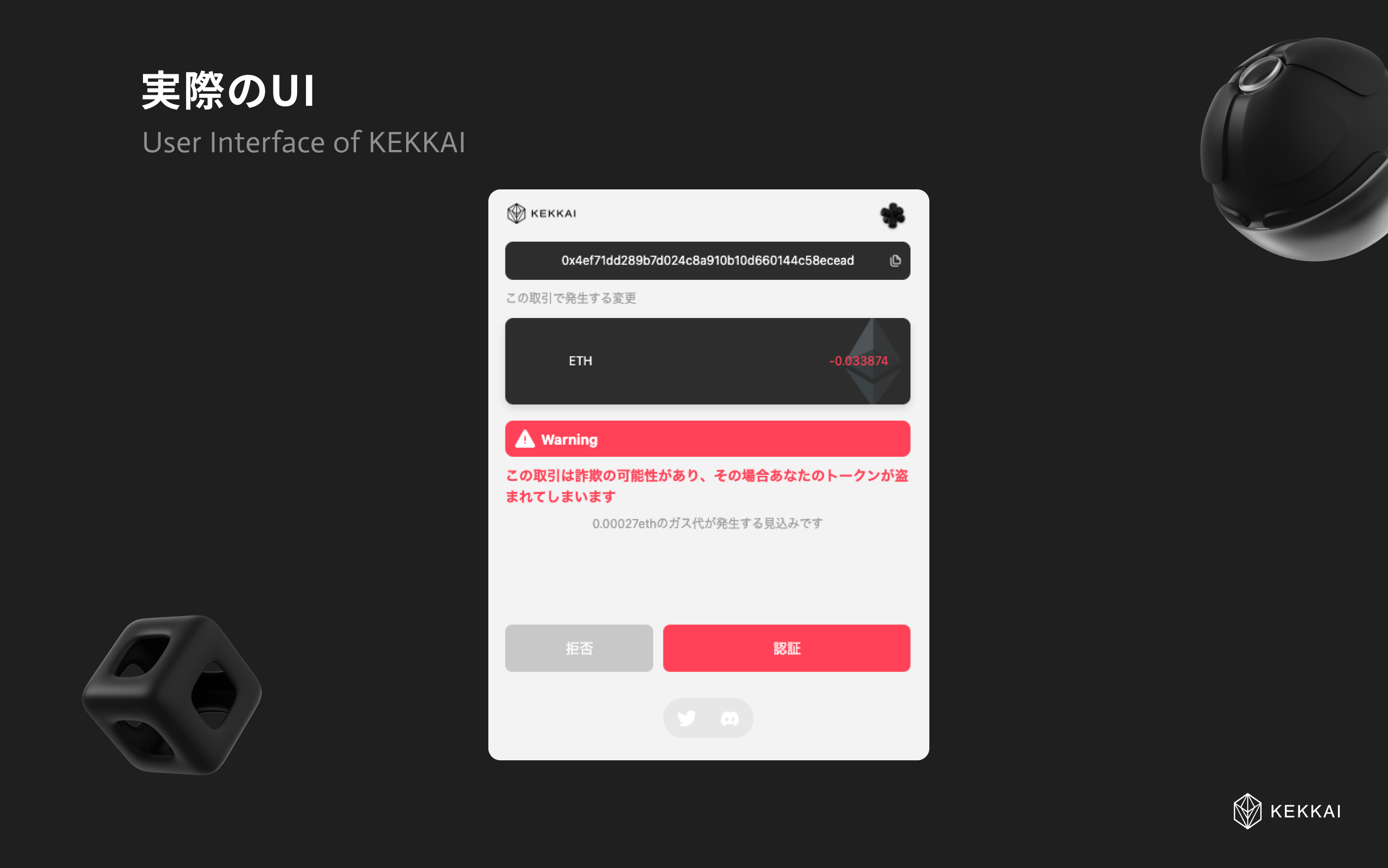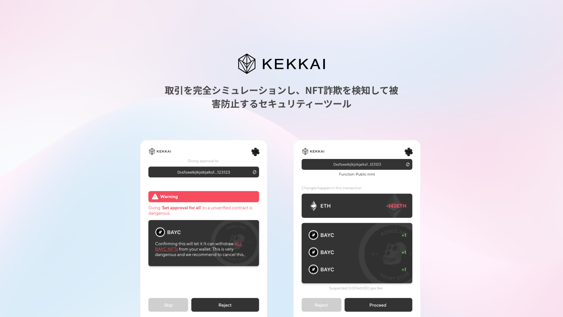 この度、昨今増加しているNFTや仮想通貨の盗難被害防止を目指したセキュリティウェブブラウザ拡張機能「KEKKAI」をリリースすることをお知らせいたします。
