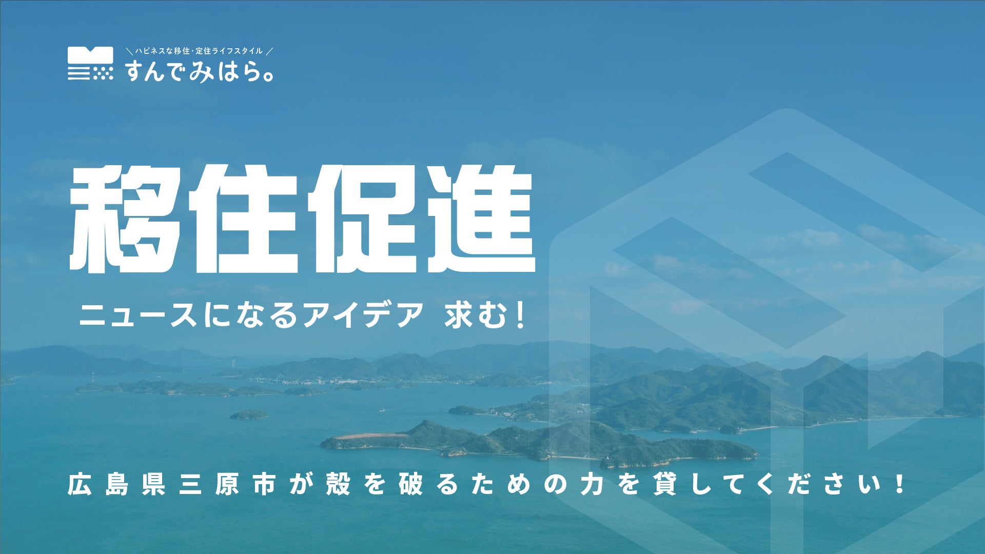 三原市の初回コンテストのアイデア募集のテーマは「移住の促進」です。三原市が自らの殻を破り、続々と移住者が集まるまちになるためにぜひ力を貸してください。