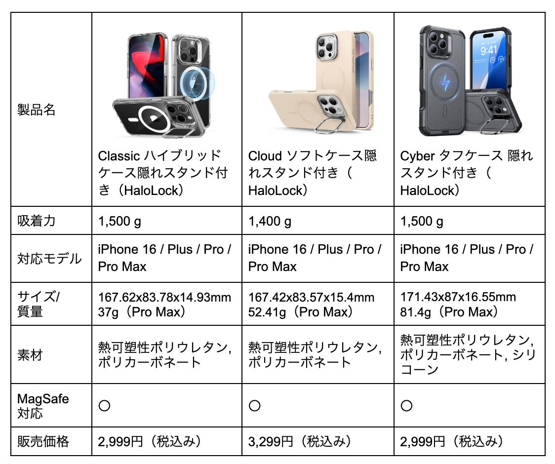 ■iPhone 16シリーズ対応 HaloLock(TM)ケースの新製品3種