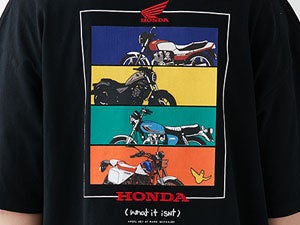 Hondaの名品バイク達を(What it isNt)オリジナルグラフィックに落とし込んだ半袖Tシャツ。
