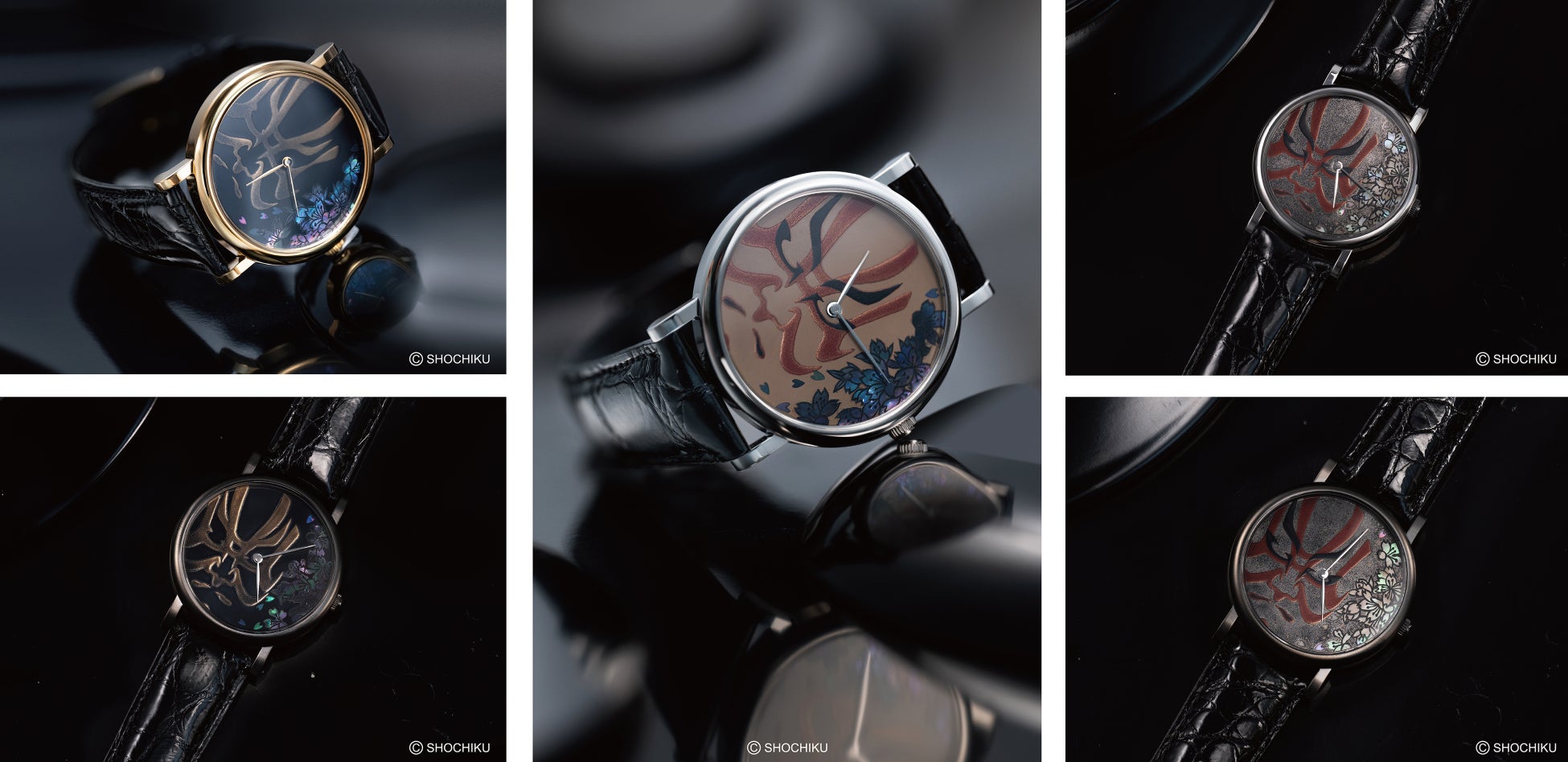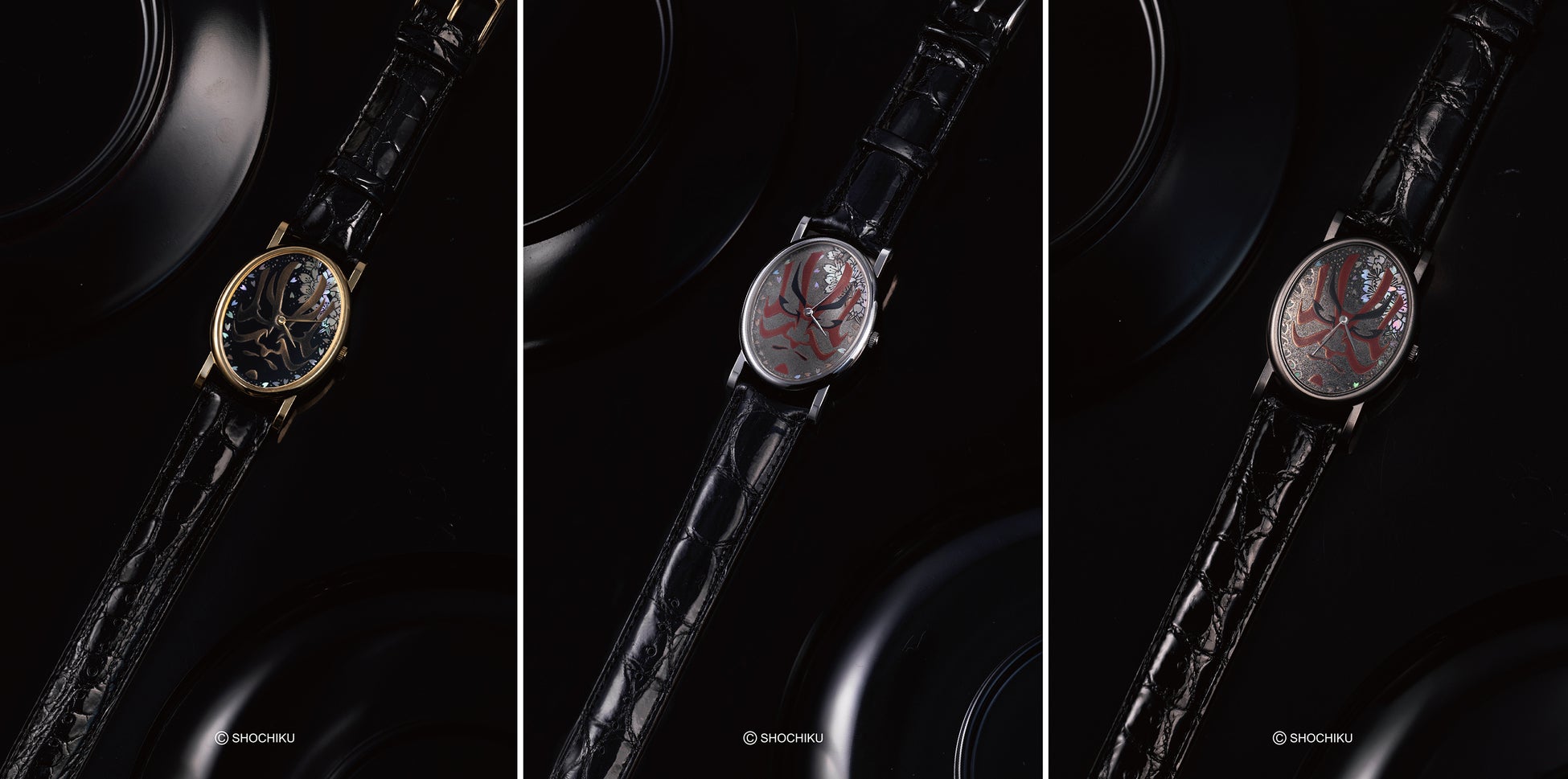 日本の伝統文化の魅力を国内外の次世代へ継承していくために、芝翫香は松竹とライセンス契約を締結し、日本の伝統芸能を美しいジュエリーに昇華させ、隈取の意匠を基にデザインした時計、リング、ネックレスを展開します。