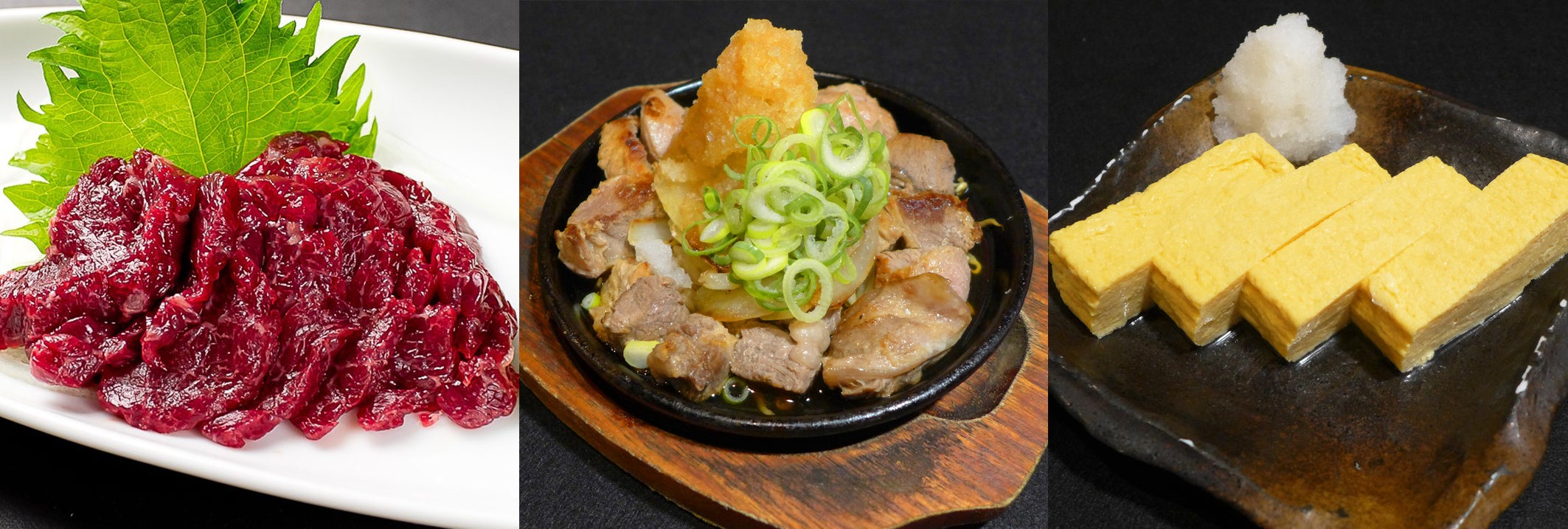 産地直送の新鮮馬刺しに人気の鉄板焼、勝男自慢のだし巻き玉子、その他一品料理も