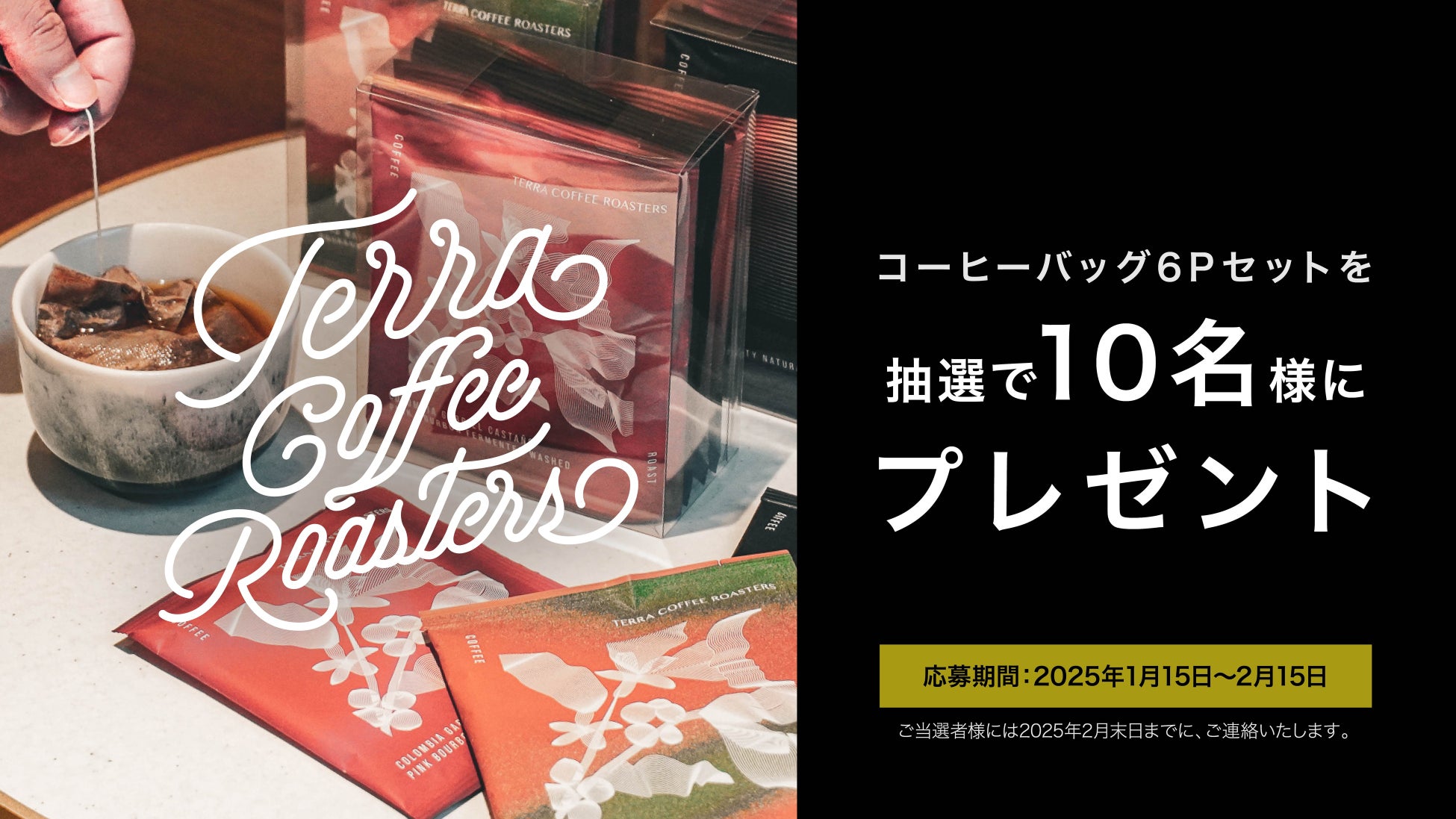 今回、イベント協賛に伴い抽選で10名様にTERRA COFFEE ROASTERS の「コーヒーバッグ6個セット」をプレゼントするキャンペーンを実施いたします。