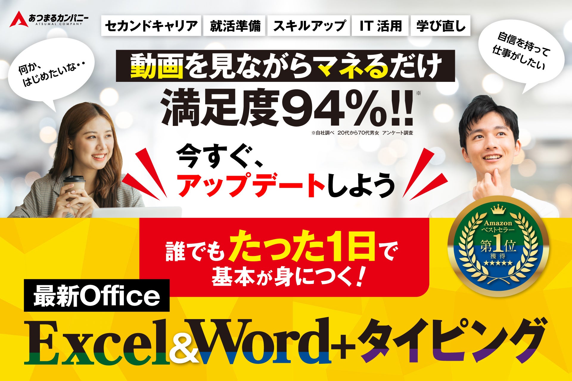 【新発売】満足度94%!まるで自宅がパソコンスクール!追加料金一切なし「誰でもたった1日で基礎が身につく!Excel&Word+タイピング」