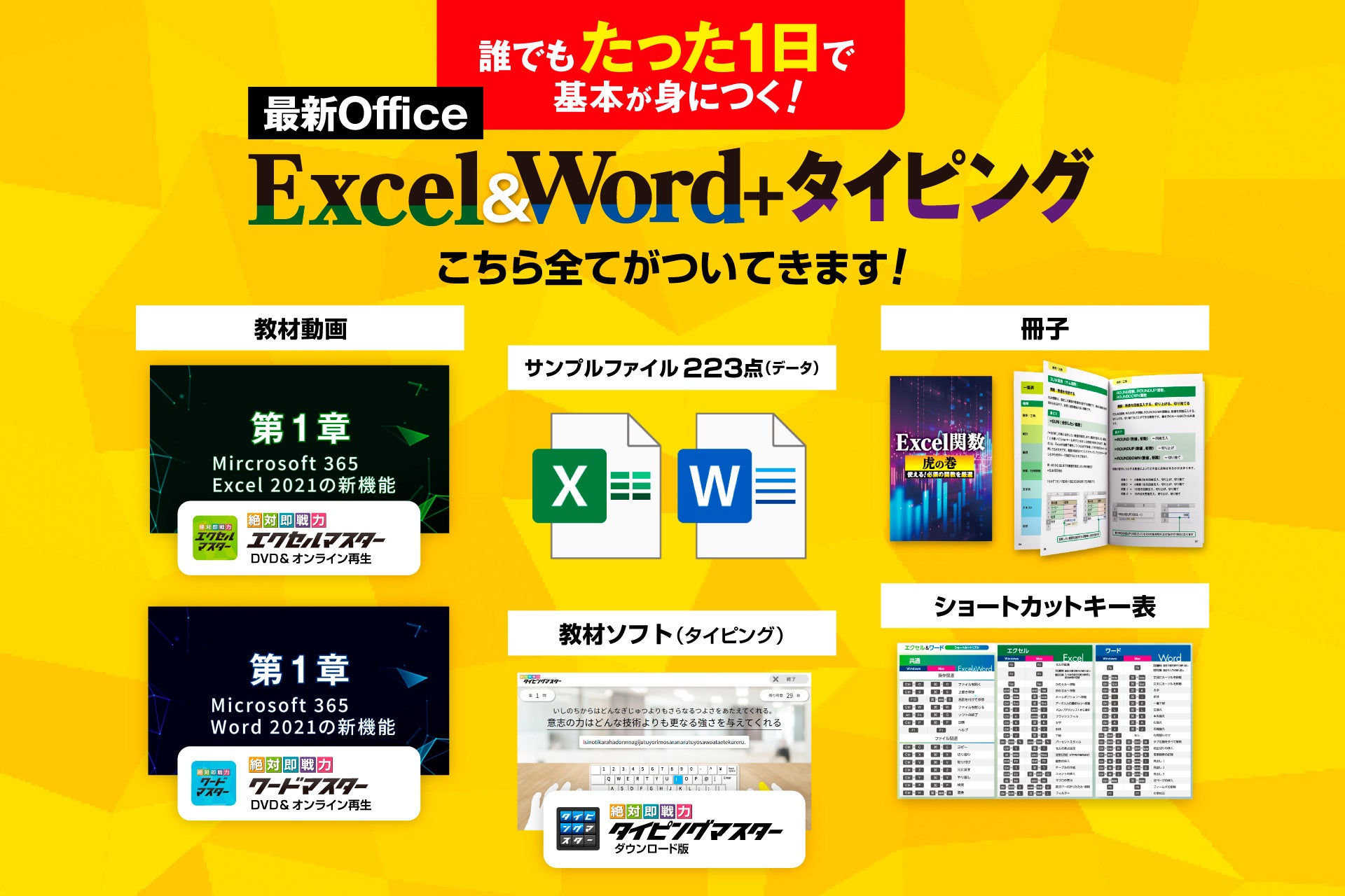 動画とソフトで隙間時間にスキルアップ!最新版のOffice2021 Office365 エクセルとワードの入門から中級までの内容を動画解説!タイピングソフトでタッチタイピングをマスターできます