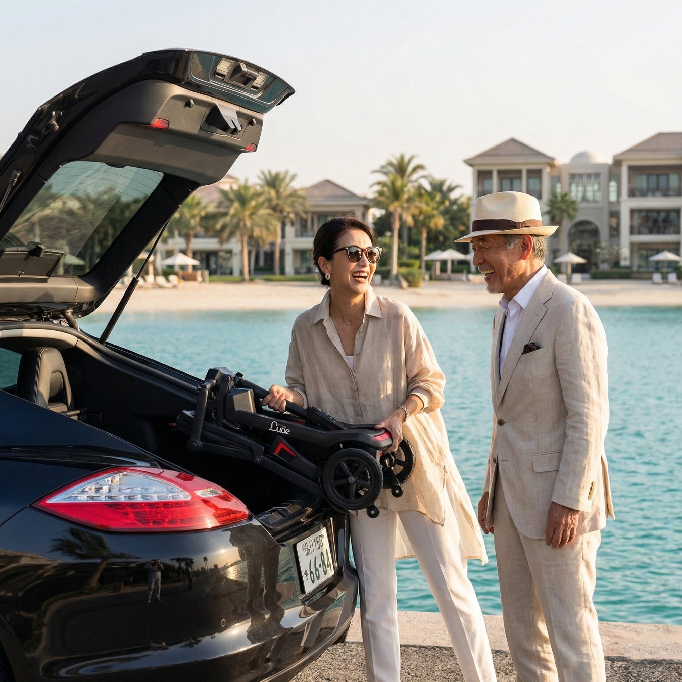 【製品の特長:旅するモビリティとしての革新】 1. 世界を変える「16kg」の衝撃 タクシーのトランク、バス、新幹線、そして飛行機。あらゆる交通機関へスムーズに持ち込み可能です。さらに、一般的な**「宅急便」で送れるサイズと重量**を実現。旅行先に先に送っておけば、手ぶらで現地へ向かい、到着した瞬間から自分の足で観光を楽しめます。