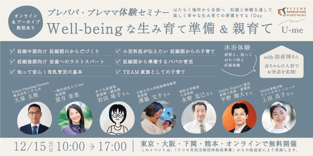 12/15(日)にプレパパ・プレママ体験セミナー"Well-Beingな生み育て準備&親育て"を全国同時開催します。