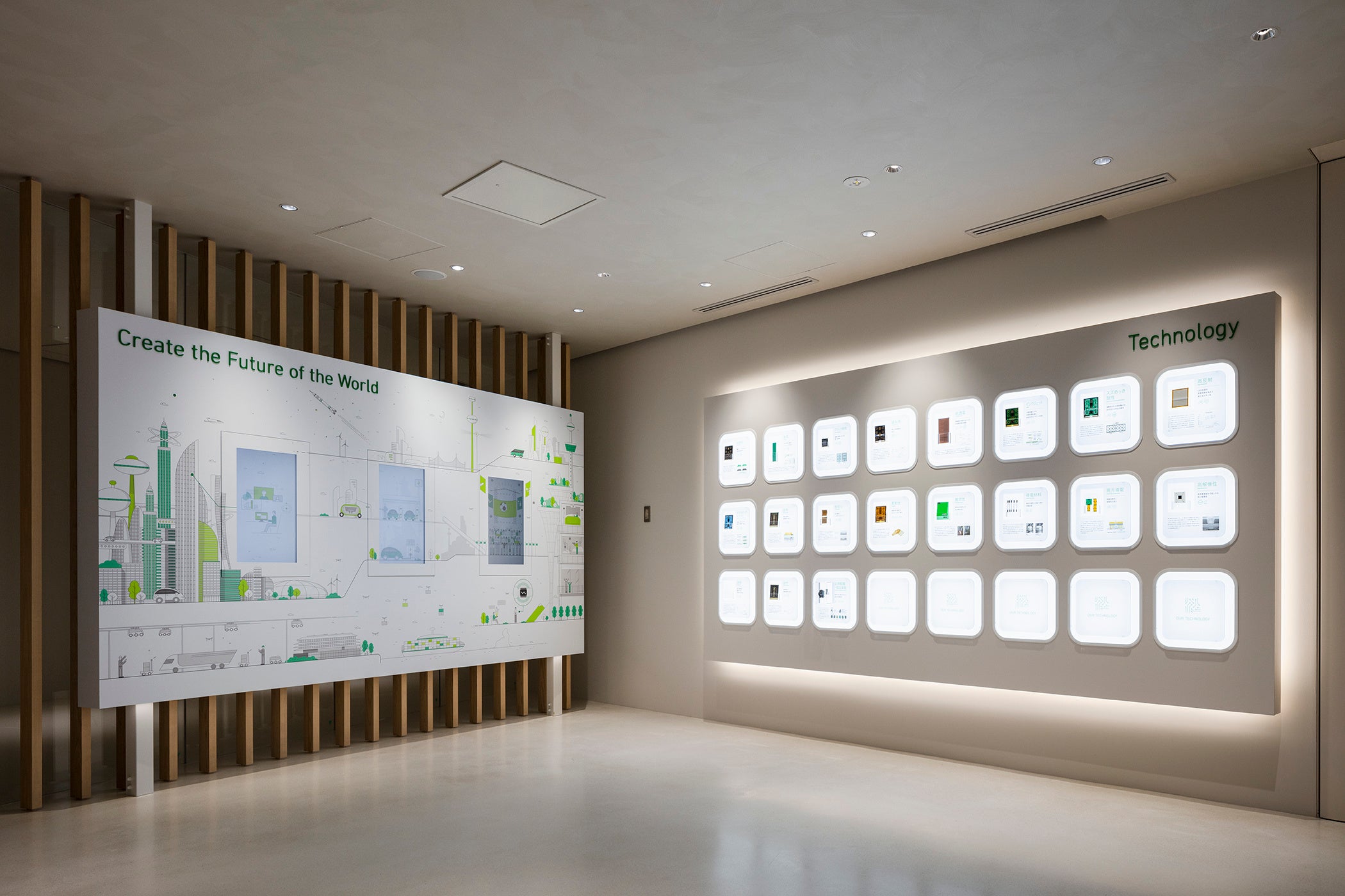 「目に見えにくい電子材料を体験的に理解できる場を設け、技術の社会的意義を伝えるとともに、ブランド価値の向上にもつなげた点が評価された。展示空間はデジタルとアナログを融合させ、タッチウォールによる製造工程の体験や未来都市を描いたパネル、実物を手元で確認できる仕掛けを配置。来訪者は情報を受動的に受け取るのではなく、自ら気づき、触れ、考える能動的な体験を通じて技術の魅力に触れられる。対話を誘発する空間構成やグラフィックの調和により、技術と人を結ぶ印象的なショールームとなっている」