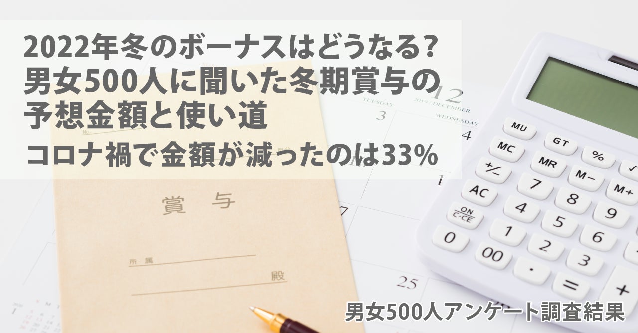 2022年冬のボーナスはどうなる?男女500人に聞いた冬期賞与の予想金額と使い道。コロナ禍で金額が減ったのは33%