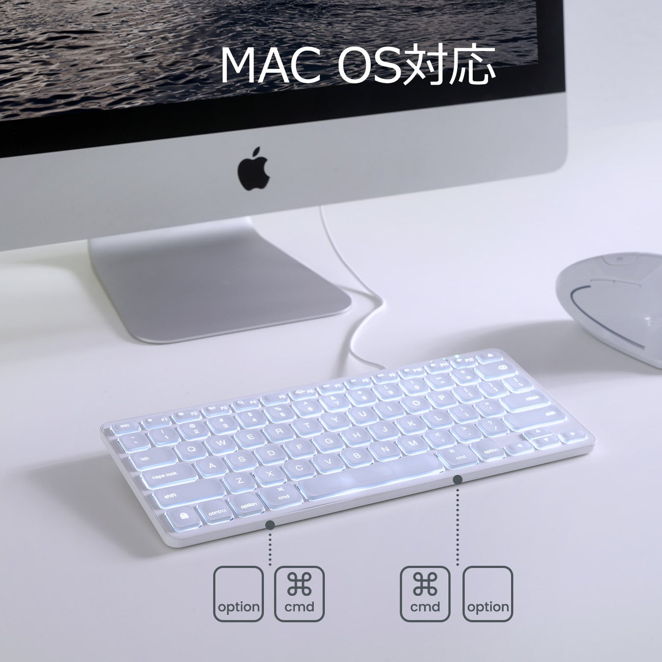 主な特徴:MacOS対応、バックライト、ミニキーボード、パンタグラフキー