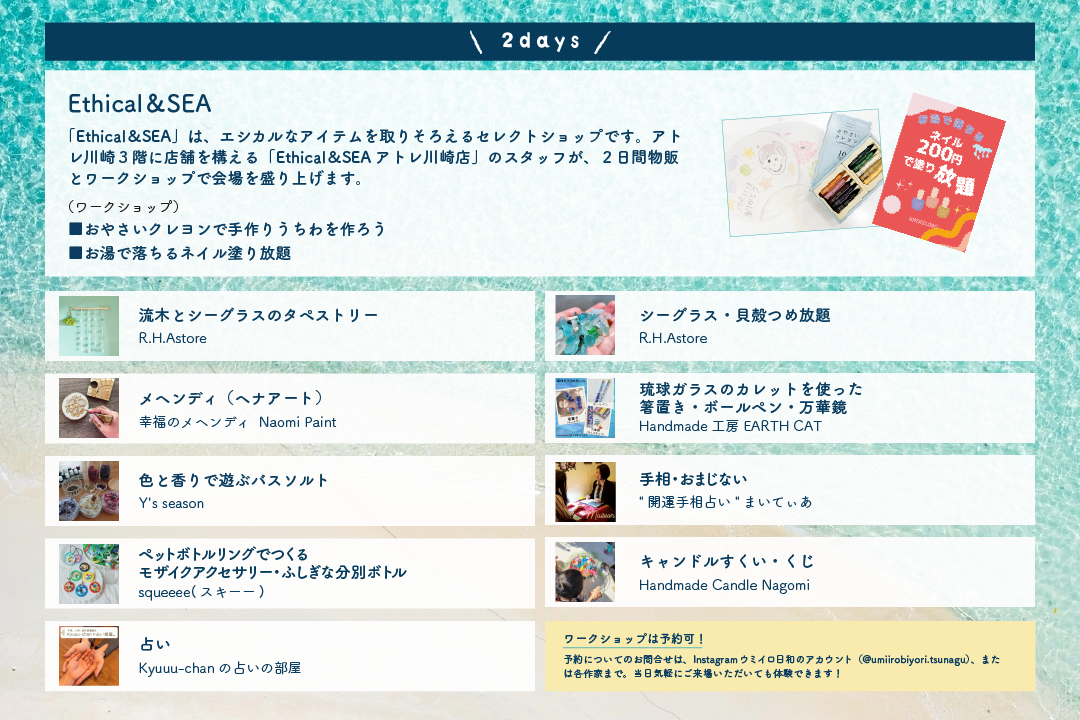 イベント名称 :「Ethical&SEA Presents ウミイロ⽇和 〜かわさきSDGsワークショップ〜」