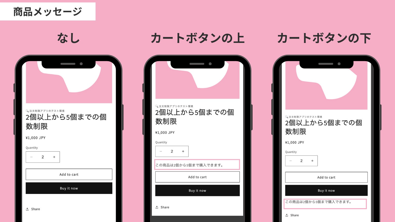 販売個数制限を実施する商品に任意のメッセージを表示することが可能です。また、アラートメッセージの文言も自由にカスタマイズ可能です。
