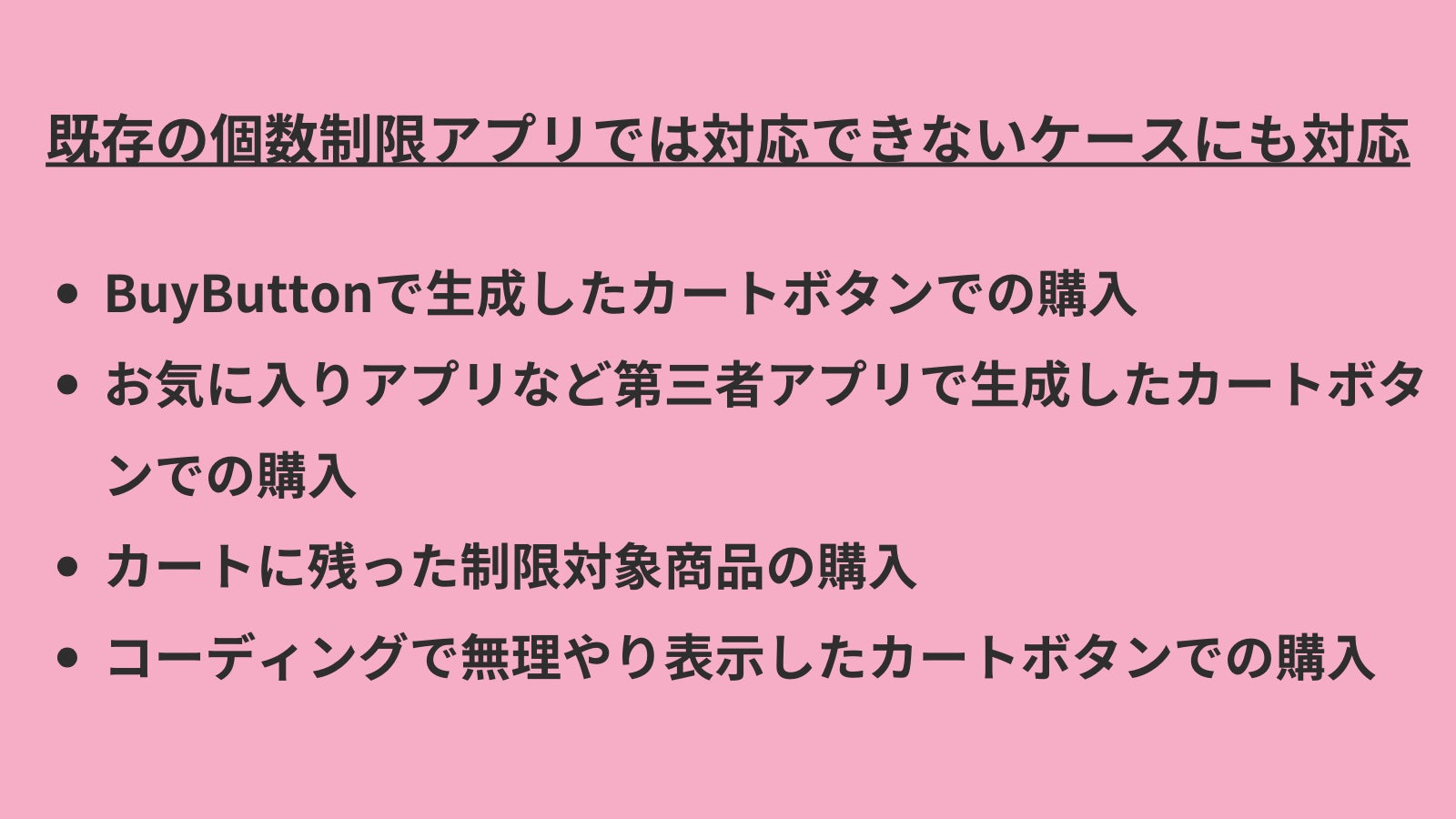・商品単位:商品内のバリエーションの合計個数が制限対象になります