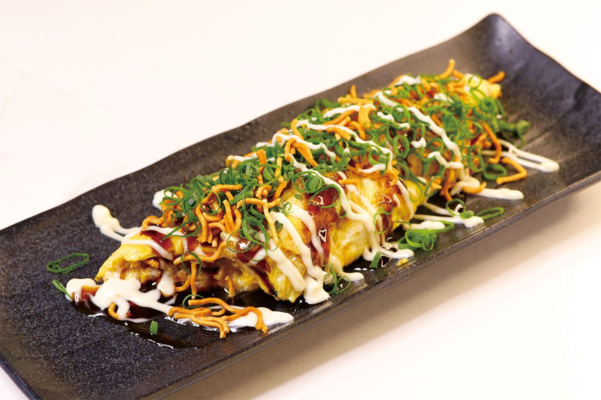 千房の人気サイドメニューとのコラボ。とろとろ卵に食感を残したベビースター、表面のパリパリベビースターと2種の食感を味わえます。ベビースターのコクと千房マヨネーズの相性がよく、おつまみにも最適です。