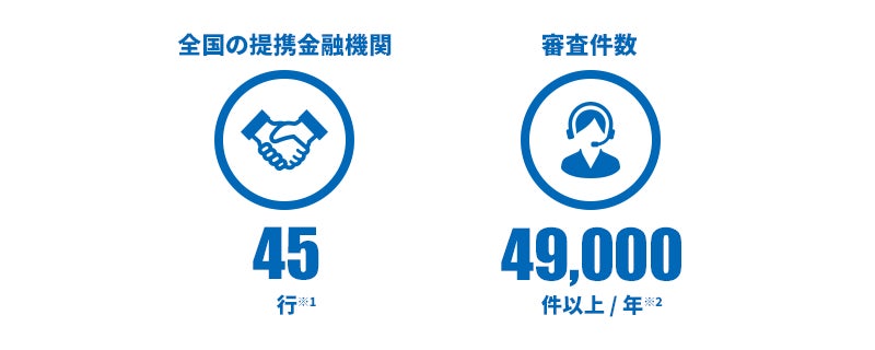 2024年9月末時点で提携金融機関は45行、審査件数は年間49,000件以上に拡大しております。