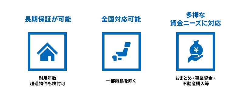 セゾンファンデックスの信用保証サービスは全国対応で長期保証が可能なほか、フリーローン、不動産購入ローン、事業資金融資などの多彩なニーズに柔軟に対応しています。