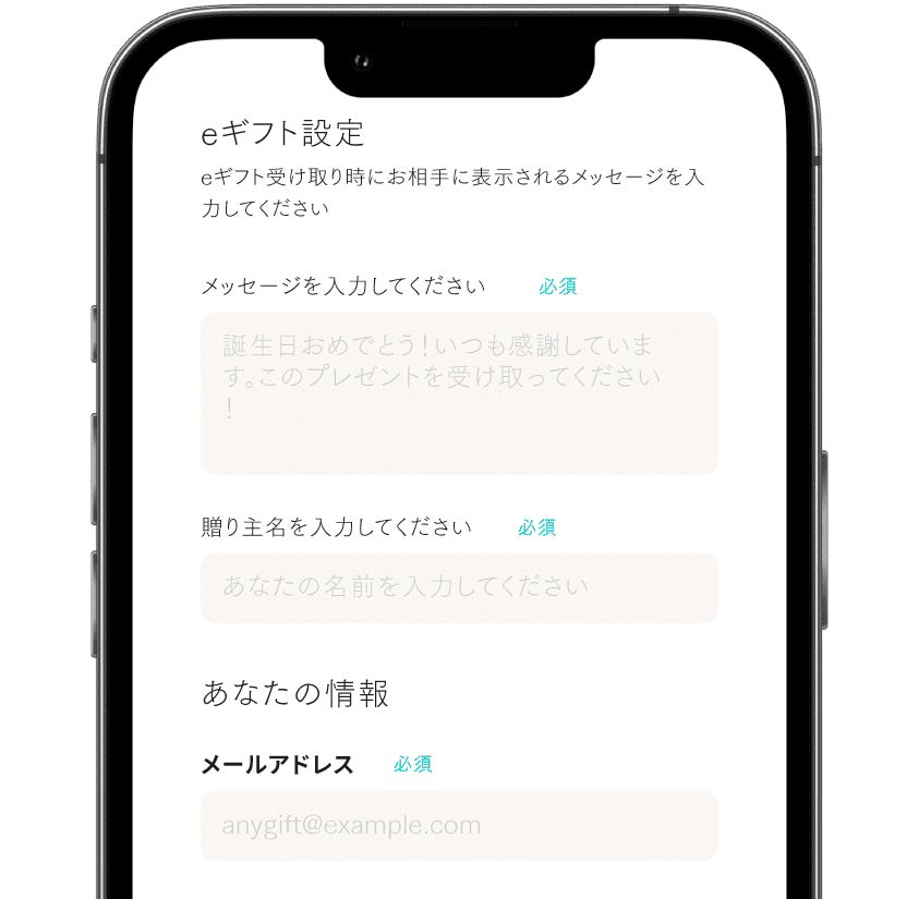 ご注文者様は「メールアドレス」の情報のみでeギフト購入が可能です。