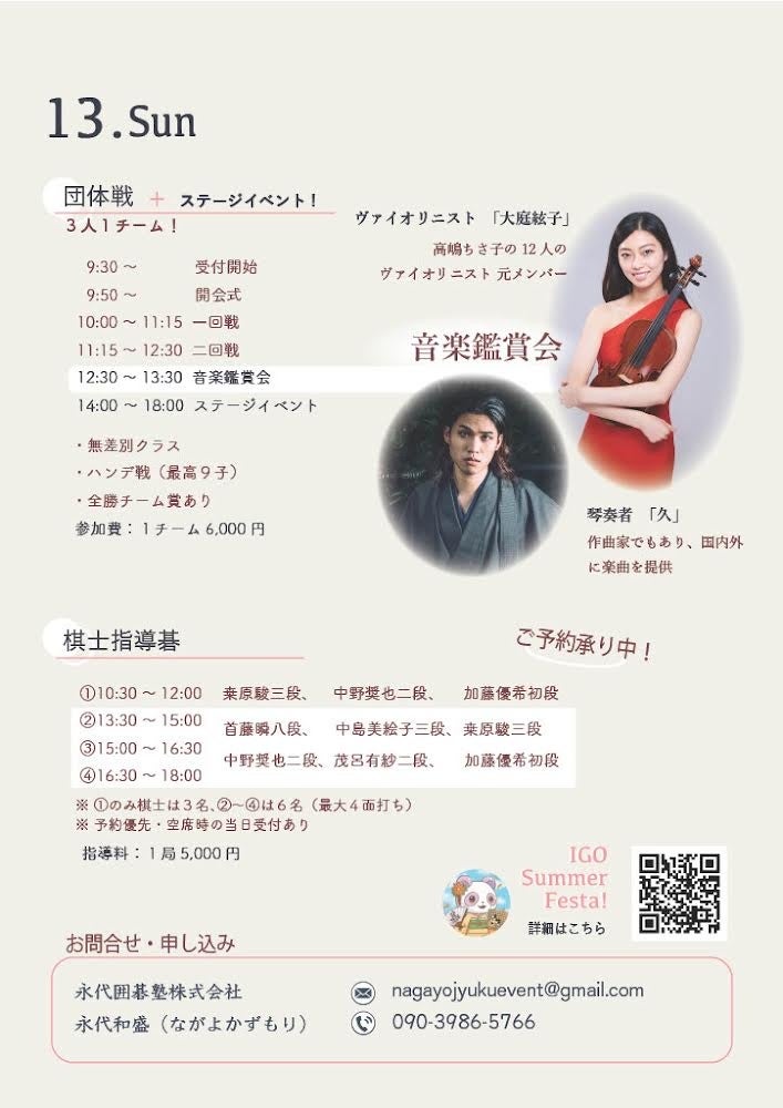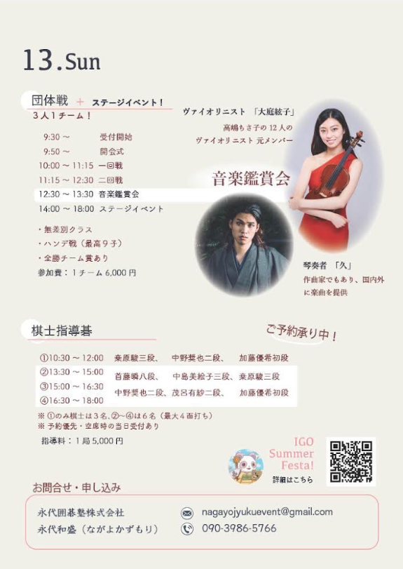 こちらでは、子ども囲碁大会、団体戦、棋士指導碁会、インストラクター指導碁会を予定しております。