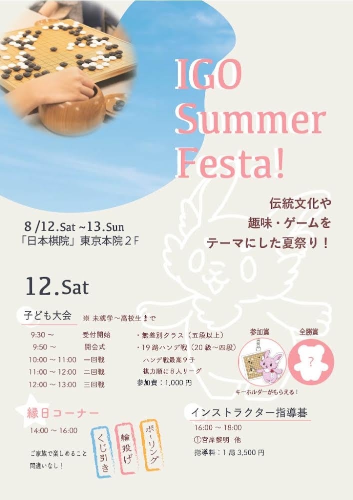 このイベントの中には、子ども囲碁大会と縁日があります。