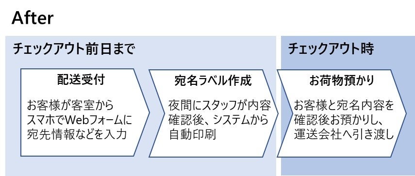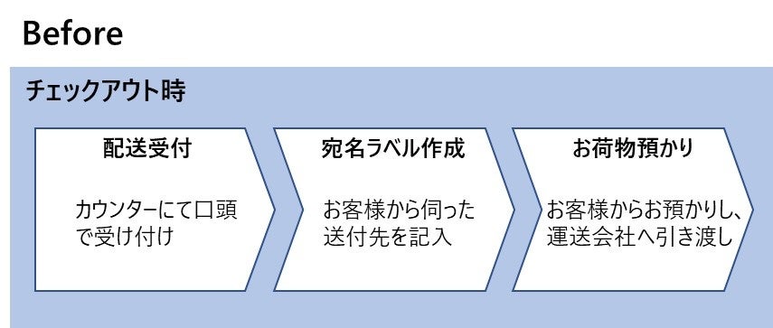 スーツケース配送業務において、送り状印刷を自動化し、フロントのチェックアウト業務を効率化