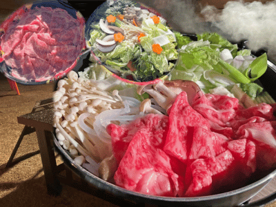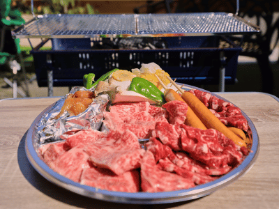 Relacpingではの近江牛を堪能できるBBQや冬季にはすき焼き鍋やしゃぶしゃぶをご用意しておりますので、手ぶらでお食事を楽しんでいただけます。お食事の他にも、クラフトビールや日本酒をはじめとした地酒の販売もございます。