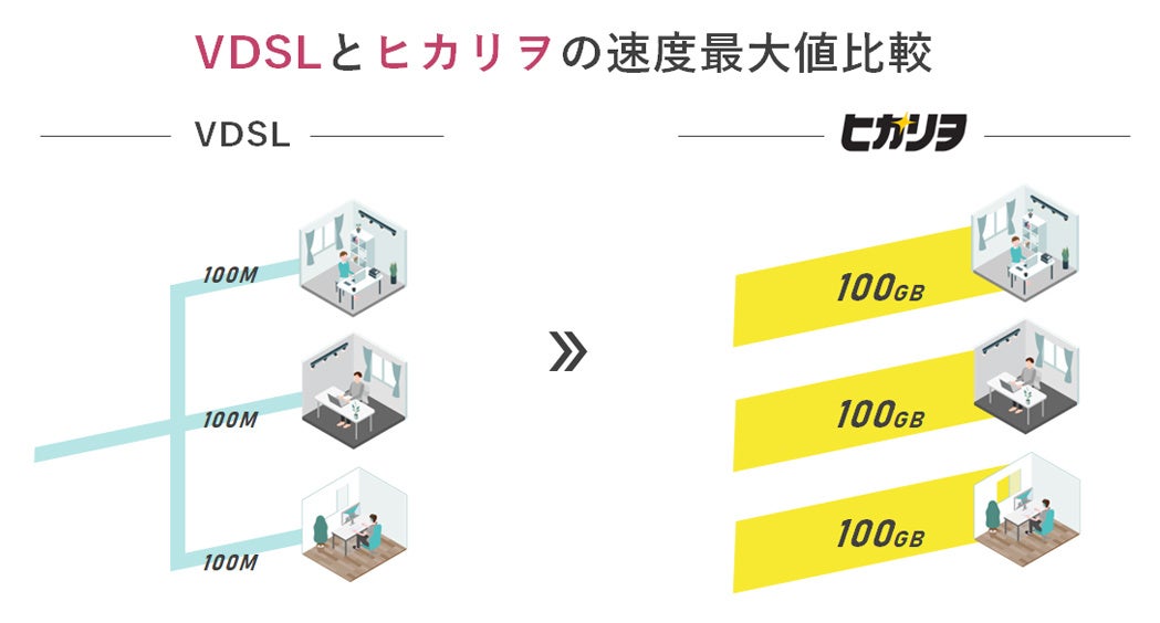 VDSL方式から光配線方式へのアップデートで最大通信速度100Gbpsまで対応可能に