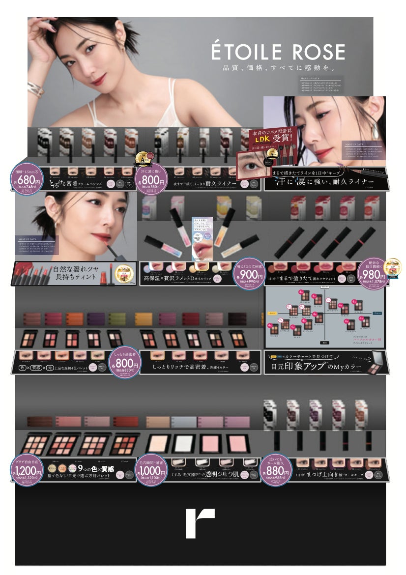 ÉTOILE ROSEは、2022年の発売以来「品質、価格、すべてに感動を」をコンセプトに、心ときめく高品質コスメを、手の届く価格でお届けすることをミッションとし、ドラッグストア・バラエティショップを中心に展開しているコスメブランドです。