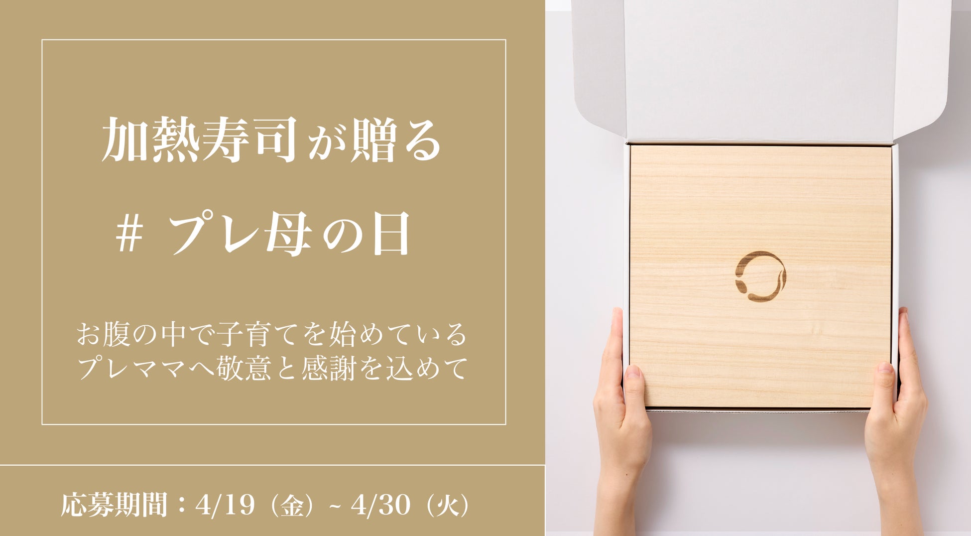 第4回日本子育て支援大賞(*1)を受賞した”妊娠中でも安心して食べられる火を通したお寿司”「加熱寿司」(かねつずし)より、妊娠中のパートナーやご家族に向けて、”プレ母の日”と題して、現在妊娠中のプレママ・プレパパを対象としたプレゼントキャンペーンを開始致します。