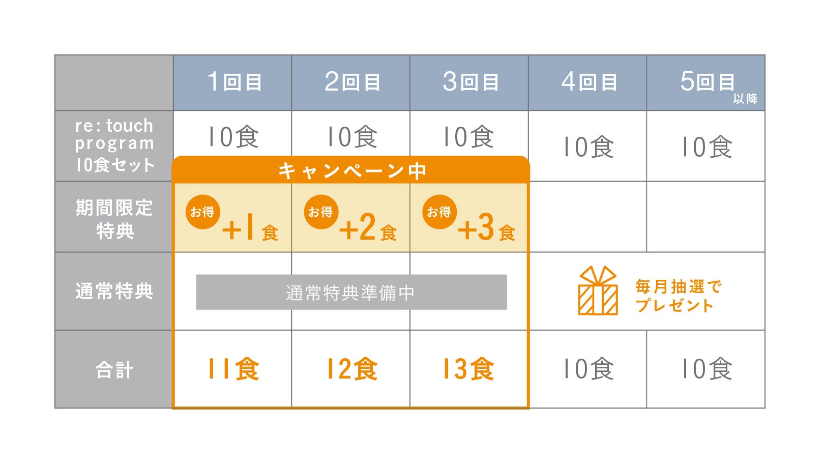 re : touch mealは、短期間でカラダの中を変えていくことを目的に、予防医学・栄養学の専門家が「体内を循環させる」レシピを開発し、グランメゾン出身のシェフが調理、瞬間冷凍でお届けする置き換え食です。お手頃な価格で、定期的なカラダのメンテナンスをサポートします。