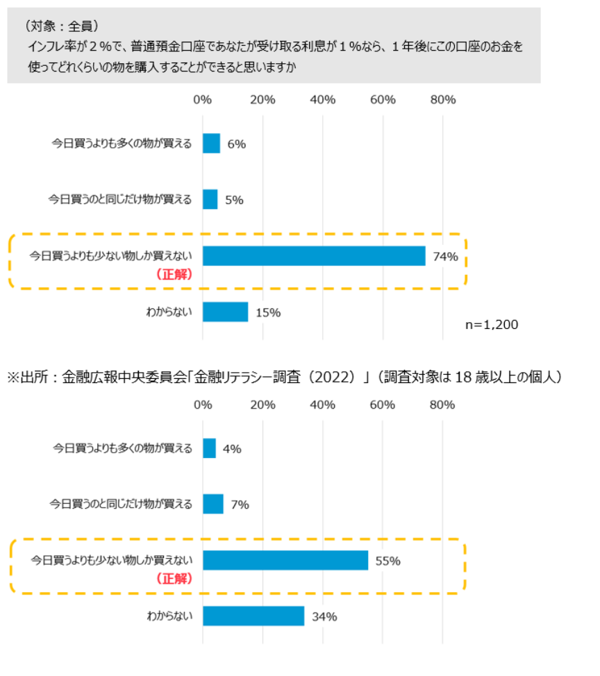 ✓ インフレの資産価値への影響に関する質問の正解率は74%。