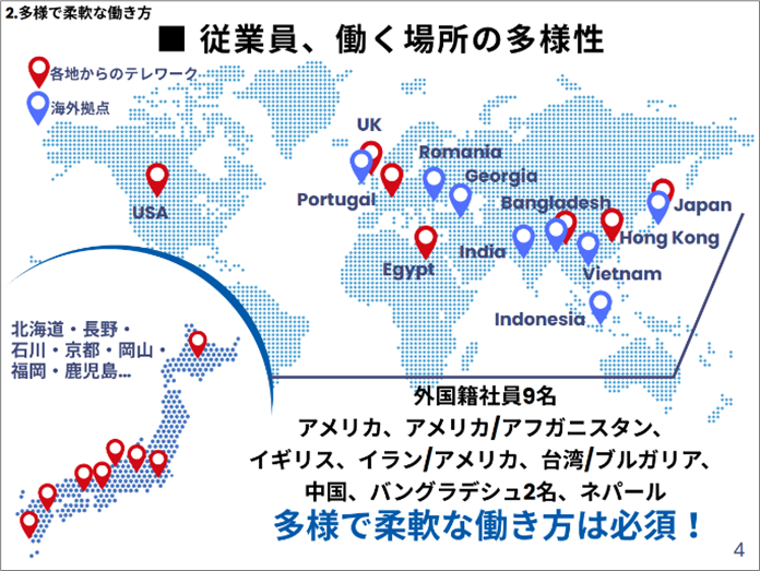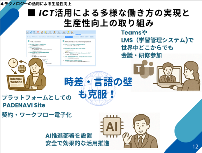 こうした事業を支えているのが、多様な専門性とバックグラウンドを持つ社員一人ひとりです。同社では、国や地域、時差や文化の違いを越えて協働する人材が、心身ともに健やかに、長期的に活躍し続けられることを重要視し、働き方改革を経営課題として位置づけてきました。