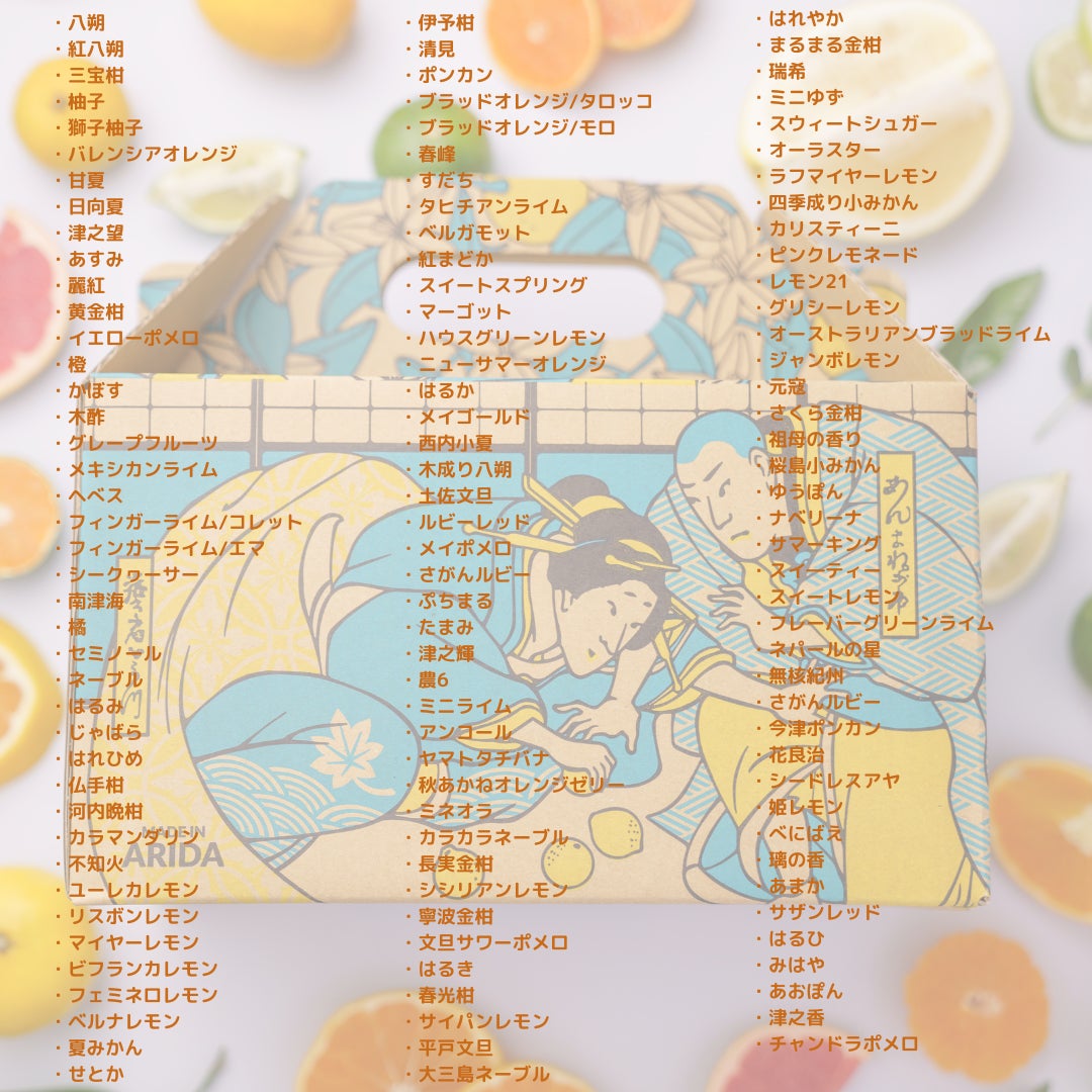 中晩柑・香酸柑橘で最大121種類、計最大162種類の個性豊かな柑橘を毎月数種類ずつお届けします。
