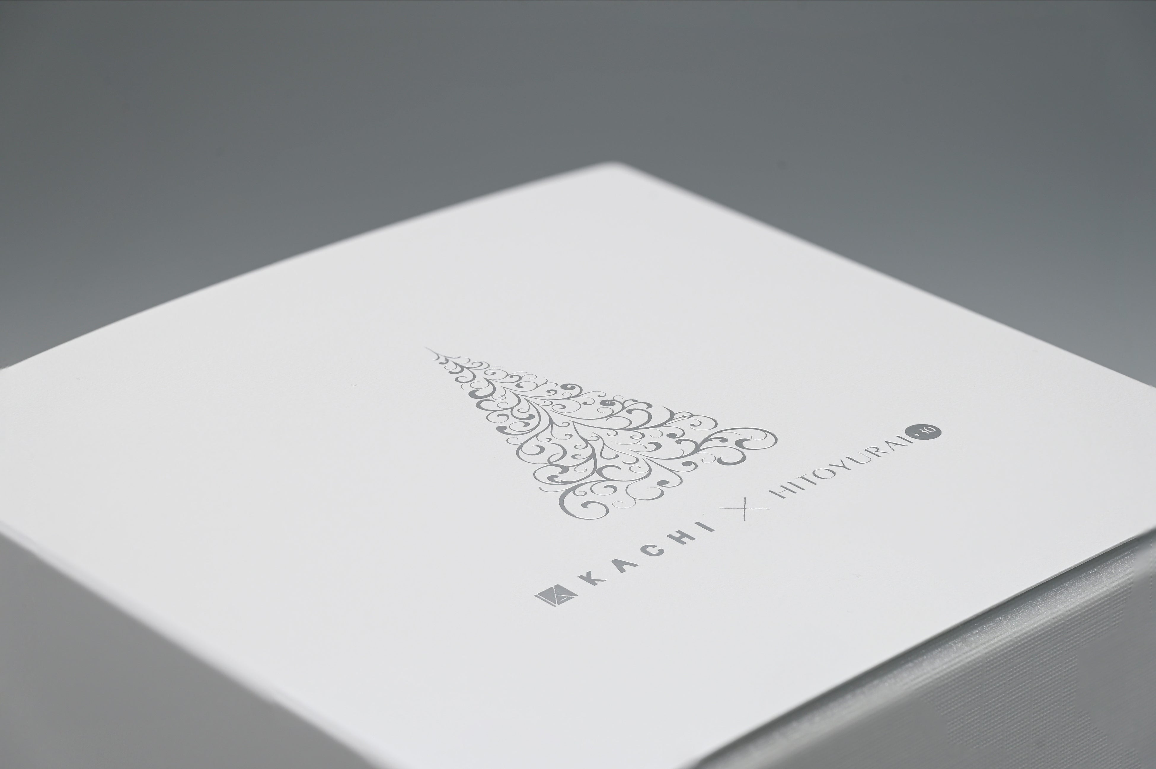 今回は特別クリスマス限定仕様として、貼箱を包むFSC認証を取得しているパールホワイトスリーブには、シルバーの箔押しでクリスマスツリーをあしらっています。数量限定200個のスペシャルパッケージは、大切な方へのギフトにも最適です。