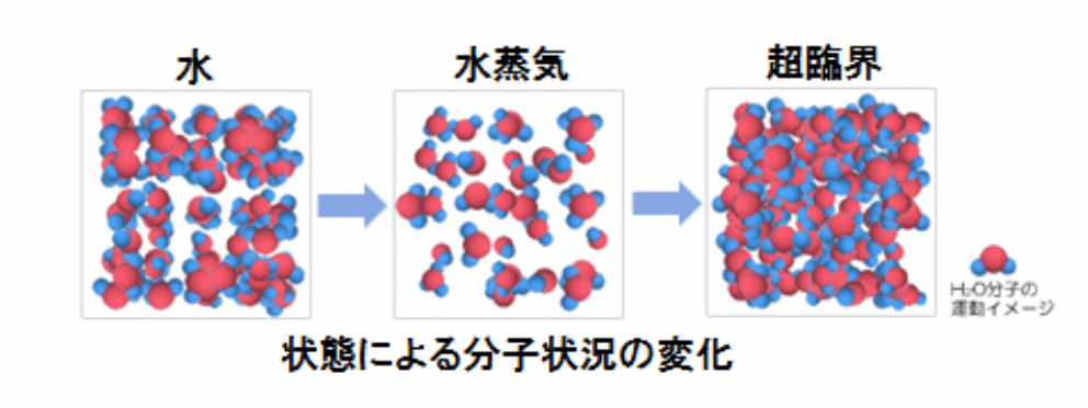「超臨界」微粒子化の状態とは、液体と気体の中間の状態を示します。極めて密度の高い気体の状態を言い(見た目は液体状)肌のすみずみ角質層深くまで美容成分を届けることを可能にしました。化粧品に応用することで水深10,000~60,000mに相当する圧力を掛け、最先端テクノロジー「超臨界」微粒子化浸透技術により、美容成分を濃縮、熟成したテクノロジーを使用したプレミアムクリームへと進化します。高圧を掛けることで分子構造を小さくなるため、肌へなじみ、浸透します。