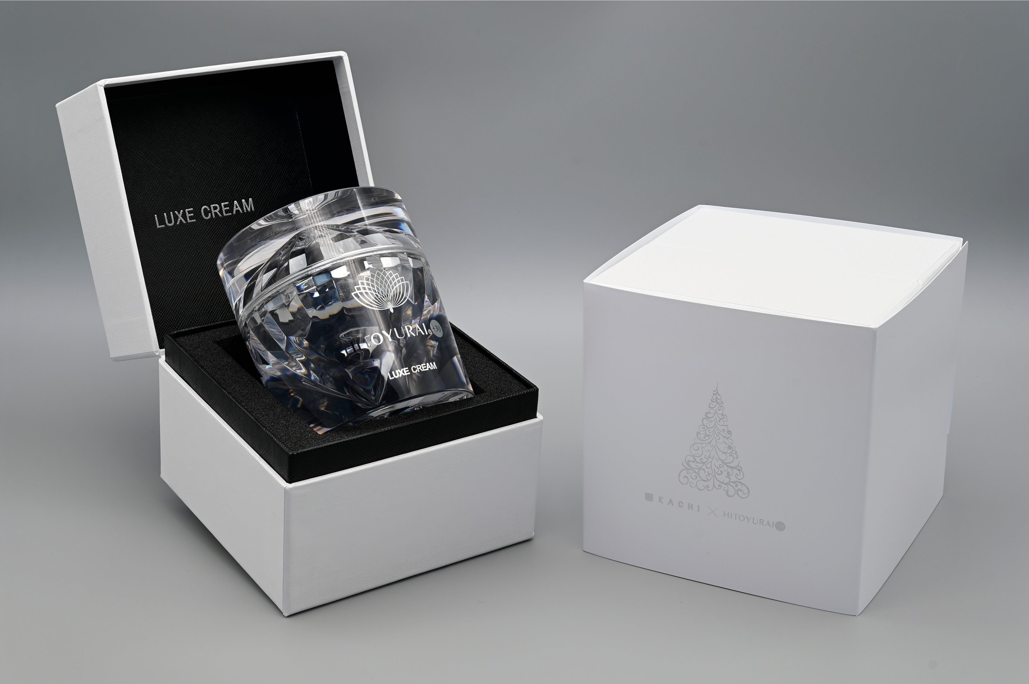 従来シリーズの贅沢な原料、すべての配合量はそのままに、ハイテクノロジーとラグジュアリーな見た目が融合した、「LUXE CREAM」をKACHIオリジナルデザインのサステナブル化粧箱に納め、2022年12月8日(木)よりKACHIオンラインサイトでコラボ商品(クリスマス仕様)として販売を開始いたします。