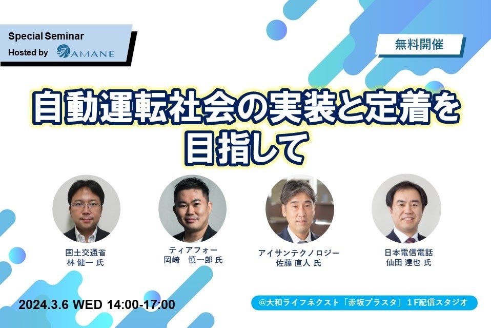 国交省・ティアフォー・アイサンテクノロジー・NTTが登壇「自動運転社会の実装と定着を目指して」2024年3月6日(水)開催