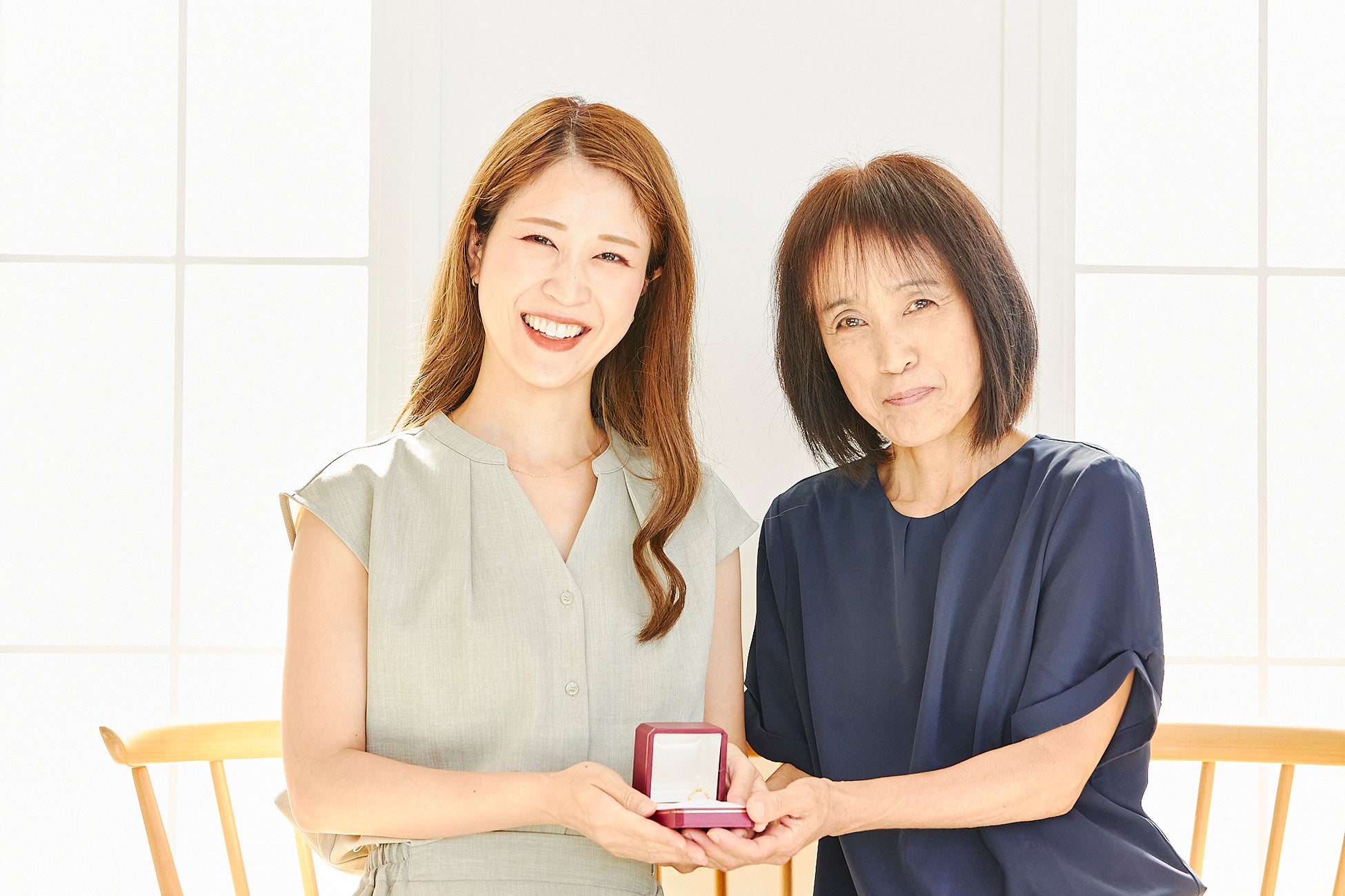 2組目は、亡くなられたお義母様の婚約指輪をお義父様から譲り受けた丸山さん(画像:左)のインタビュー記事です。