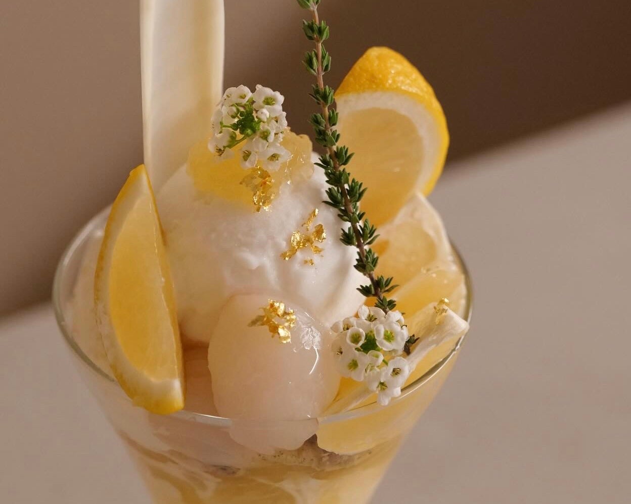 初夏を感じられるオリジナルフレーバー「ココナッツとライチのソルベ」が、日曜日限定のシーズナルパルフェ「Coupe Élairve クープエレアーヴ"小夏"」にて新登場