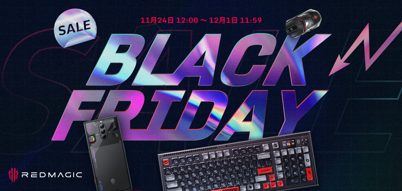 中国Nubia社傘下にあるスマートフォンメーカーREDMAGIC(レッドマジック、本社:中国深セン)は2023年11月24日(金)より、ブラックフライデーセールキャンペーンを開始いたします。キャンペーン期間中、REDMAGICの公式サイト(https://jp.redmagic.gg/)において対象製品が最大40%OFFとなるセールを実施いたします。2023年に発表されたゲーミングスマホ最新機種「REDMAGIC 8S Pro」をはじめ、REDMAGIC PCゲーミングシリーズまで、7つの商品が対象商品になります。