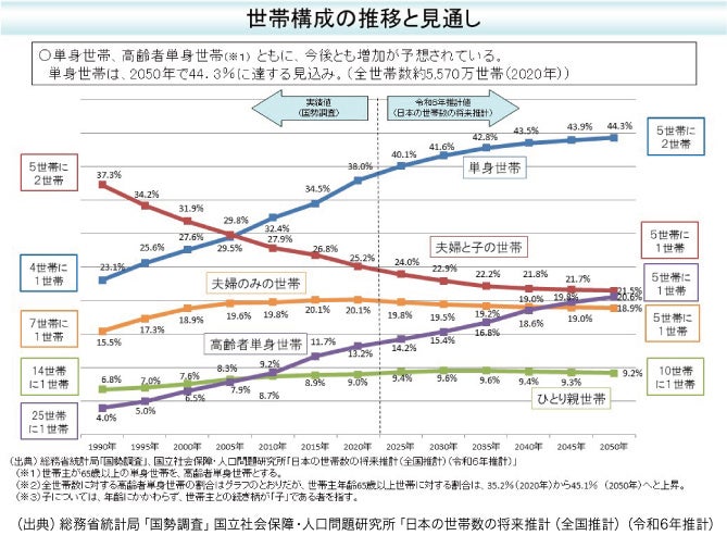 ひとり暮し世帯の割合は年々増加しており、特に都市部ではその傾向が顕著です。全国で単身世帯の割合は約40%にのぼり、東京都内ではすでに半数以上が単身世帯と言われています。ひとり暮らしをする人々は多忙な生活の中で限られたスペースと時間を効率的に活用することを求めています。