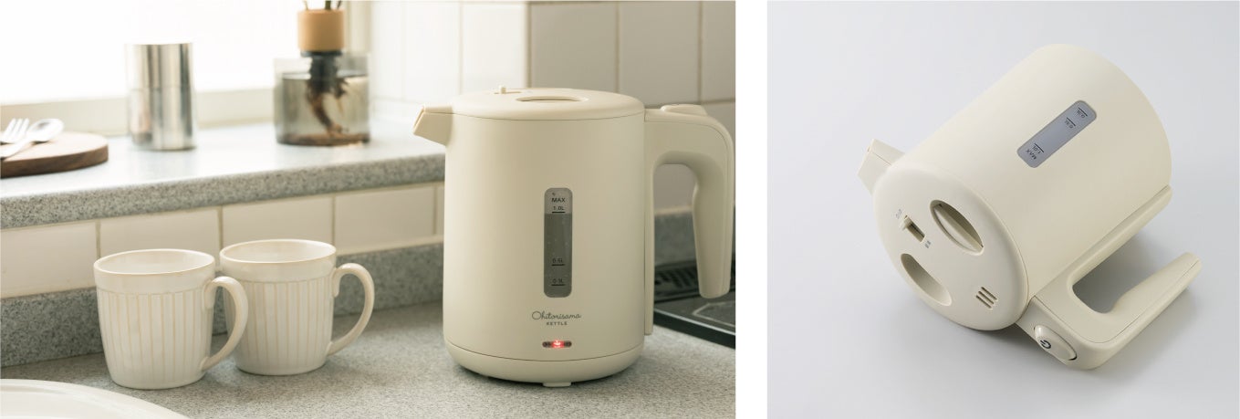 ひとり暮らしの狭いキッチン、一口しかないコンロ。限られたスペースでも場所を取らないコンパクトでシンプルなデザインはお部屋になじみ、小さなキッチンやワンルームでもすっきりと収まります。ひとり分にちょうどいい容量に誰でも簡単に使えるシンプルな操作性。ワンタッチでお湯を沸かすことができ倒れてもお湯が漏れにくい安心な設計になっています。